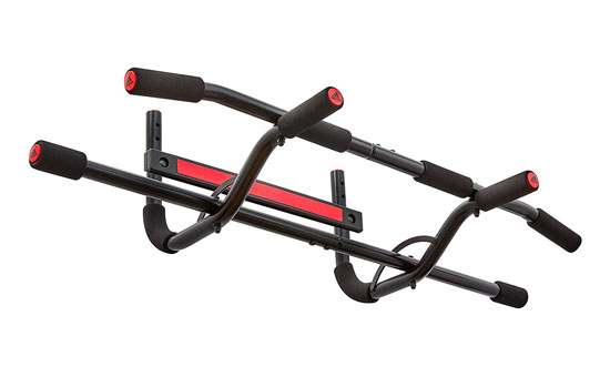 A nivel de uso, otro aspecto a no perder de vista es que la altura que te va a ofrecer una barra de este tipo nunca va a superar la altura de la puerta. Es decir, normalmente como mucho unos dos metros. Si eres de los míos (rozo los 190cm) prepárate para tener que flexionar las rodillas siempre, o incluso para rozar el suelo con ellas (a mí me ha pasado a veces).